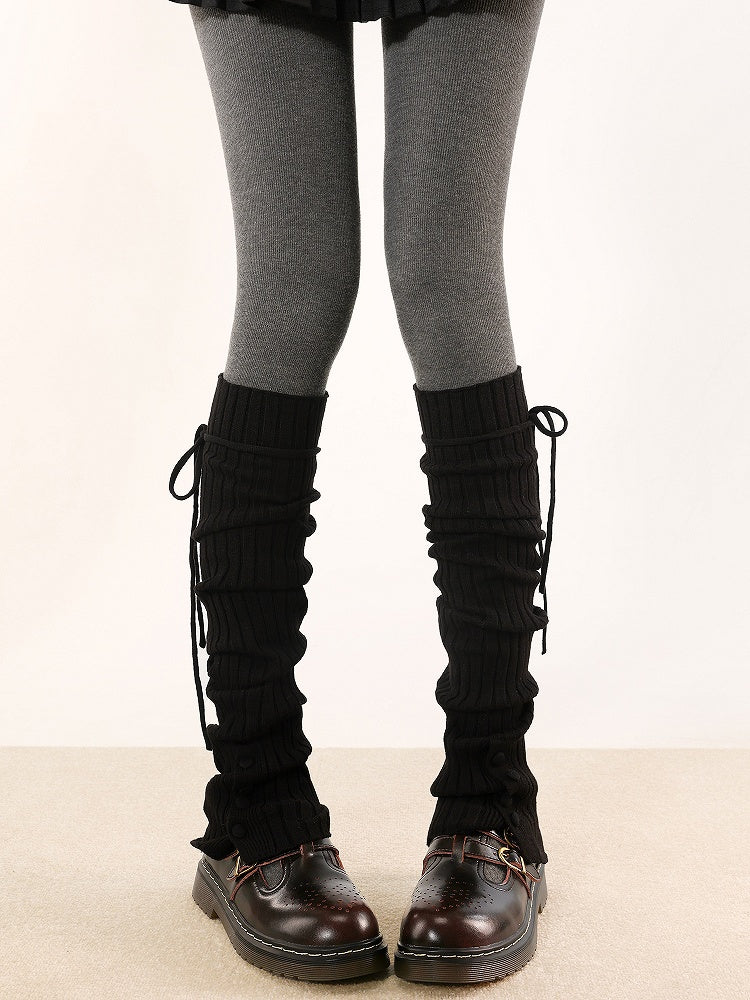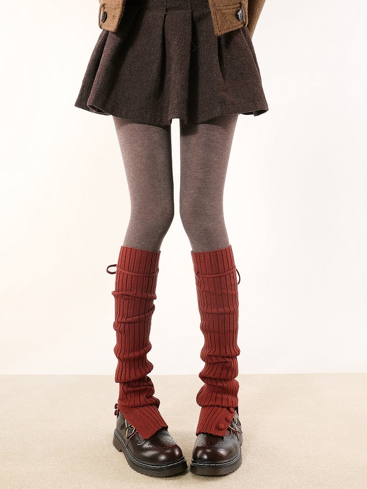 5 Colors Vertical Striped Pattern Knitted Leg Warmers with Straps and Buttons