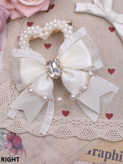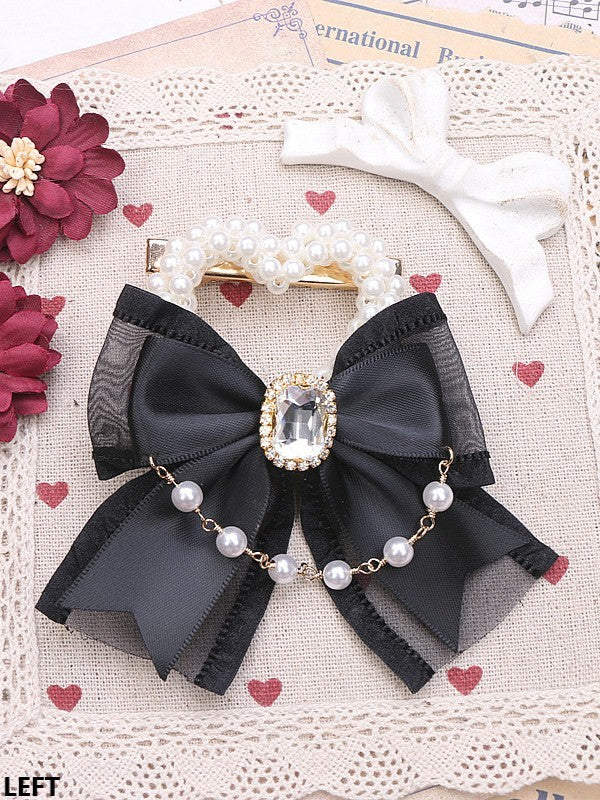 Jirai Kei 3 Color Options Bowknot Heart Pearl Chian Hairclip