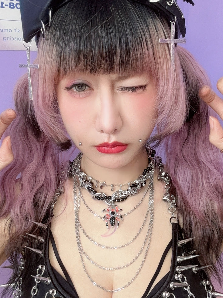 Silver Rhinestone Spider Pendant Beaded Decorated Necklace