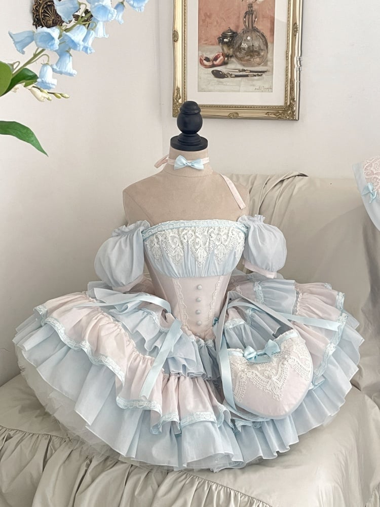 Pink and Blue Princess Corset Puffy Dress Tiered Ruffle Skirt Full Set