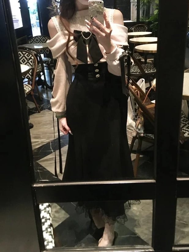 ● Big Bow / Cutout Shoulder / Lace Trim / Lace-up Detail