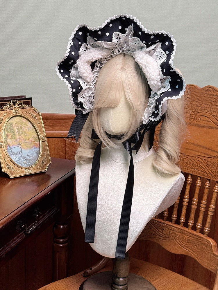 Pink Blue Red Dots Bonnet Polka Black / Bear Ears Lolita with