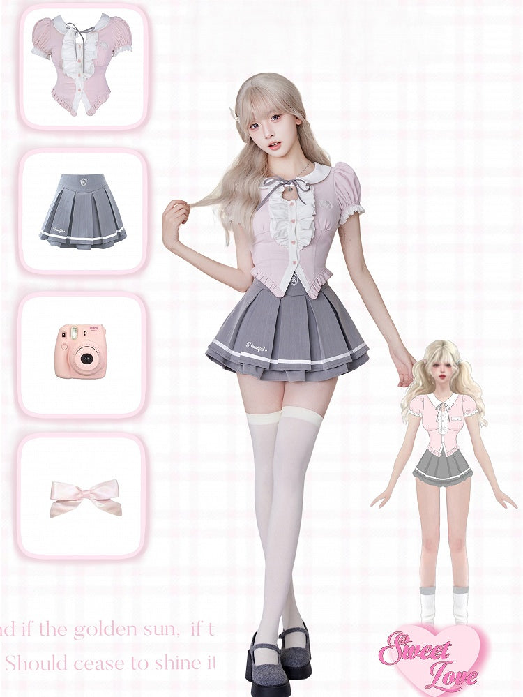 ● Bowknot Details / Front Button Placket / Ruffle Trim