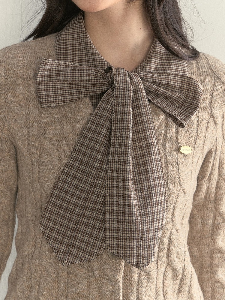 Khaki Vintage Elegant Plaid Faux Two-piece Sweater
