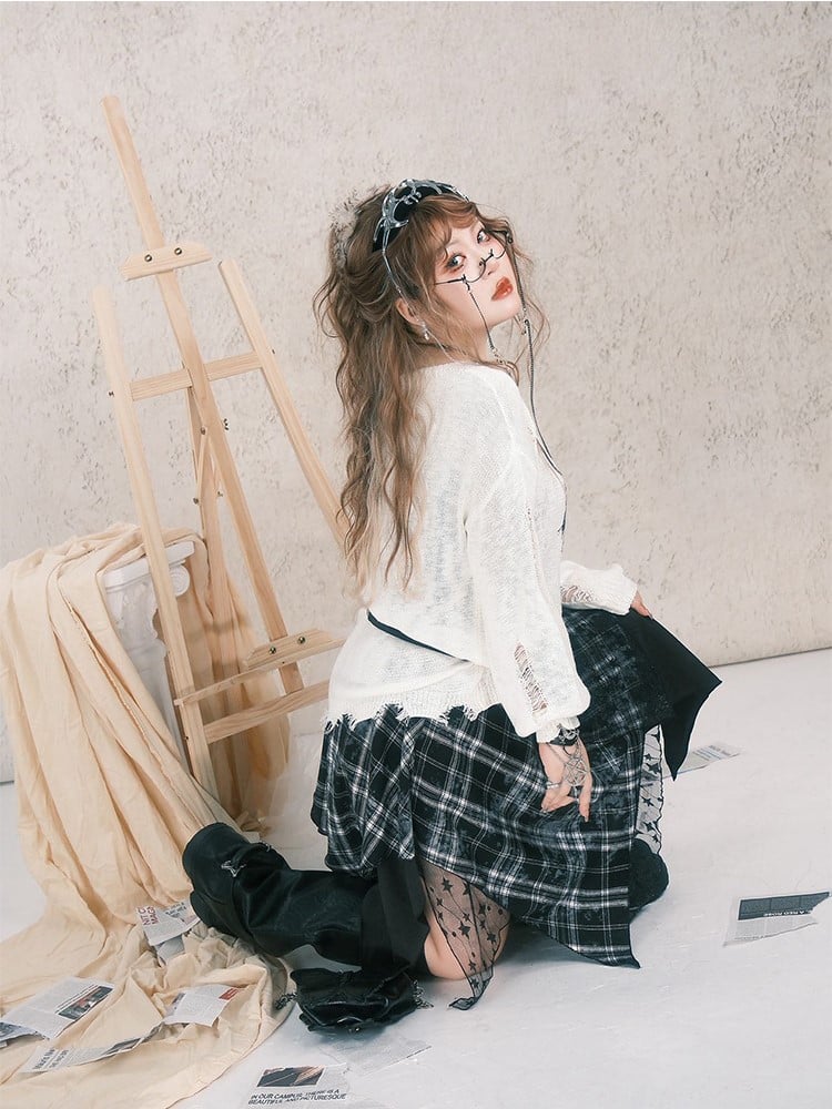 Plaid Hem Handkerchief Size Embroidered Lace with Black Skirt Layer Patchwork Plus Star