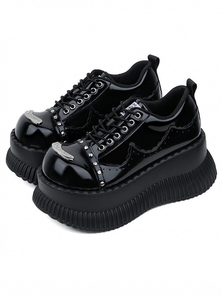 Plate Accents Details Black Stud Punk Design - Metal Lace-Up Platforms with
