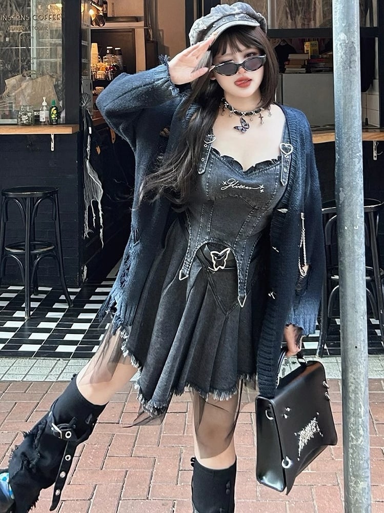 Step up your Y2K style with this adorable Plus Size Dark Grey Distressed Holes Loose Cardigan! The oversized fit is perfect for layering, while the distressed holes give you a unique and edgy look. Made for curves, this cardigan is both comfortable and fashionable.