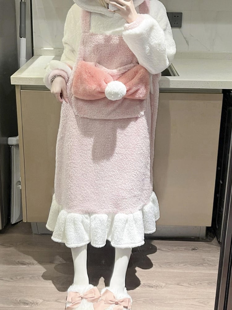Plush Yellow Mouse Ear Kiity Ear Design Thick Hooded Nightdress