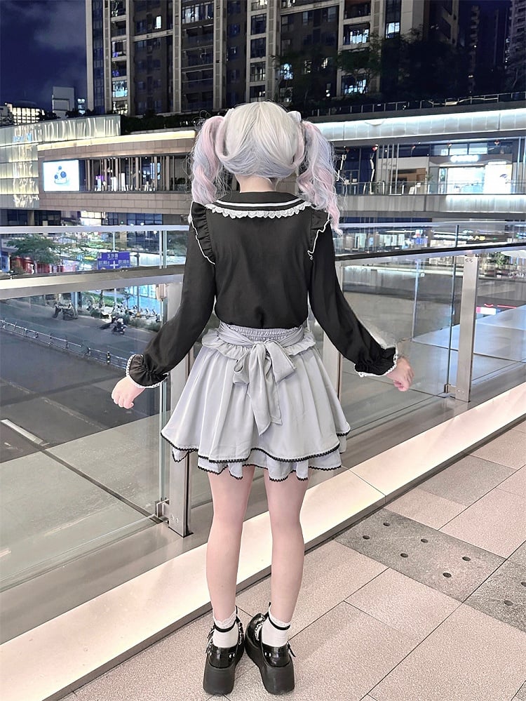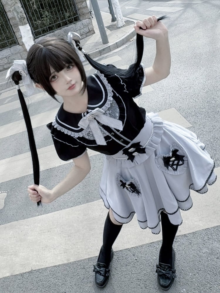 Black and White Old School Lolita Fashion Dress Bowknot Lolita JSK Set
