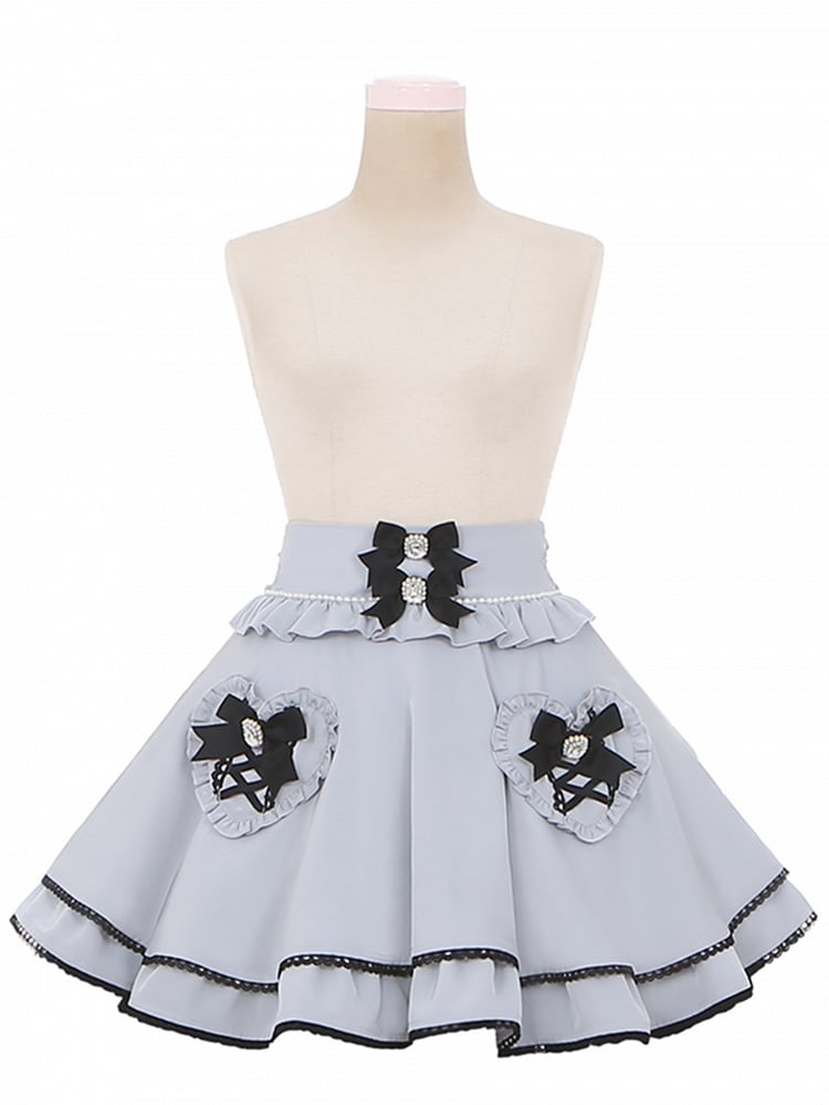 Pockets Light Jirai Skirt with Blue Kei High-Waisted Heart-Shaped Tiered