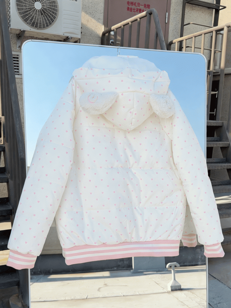 Off-white Polka Dot Hooded Jacket with Strawberry Pocket & Bear Ear Hood