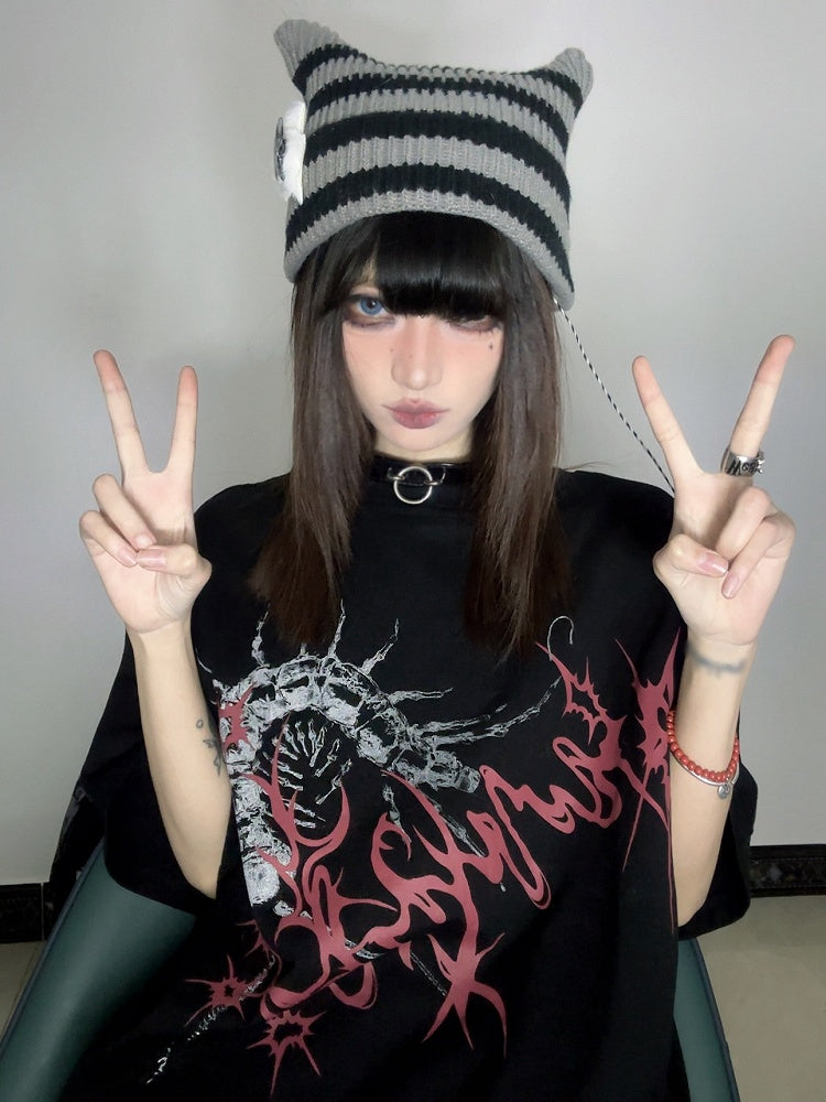 Print Dark Gothic T-Shirt with Centipede Aesthetic White/Black
