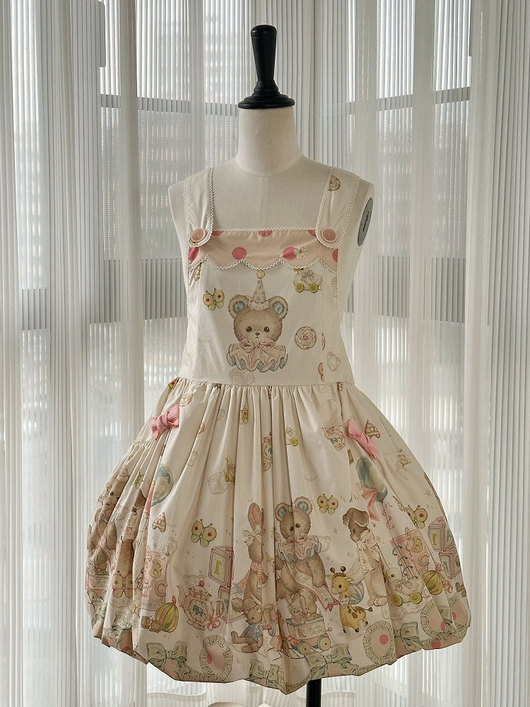 Teddy and Puppy Doll Print Sweet Lolita Overall Bubble Dress