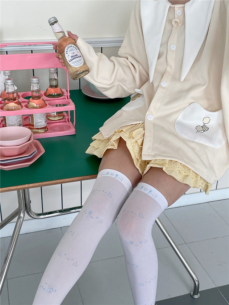 Blue/Black Cute Kaomoji Print Stockings