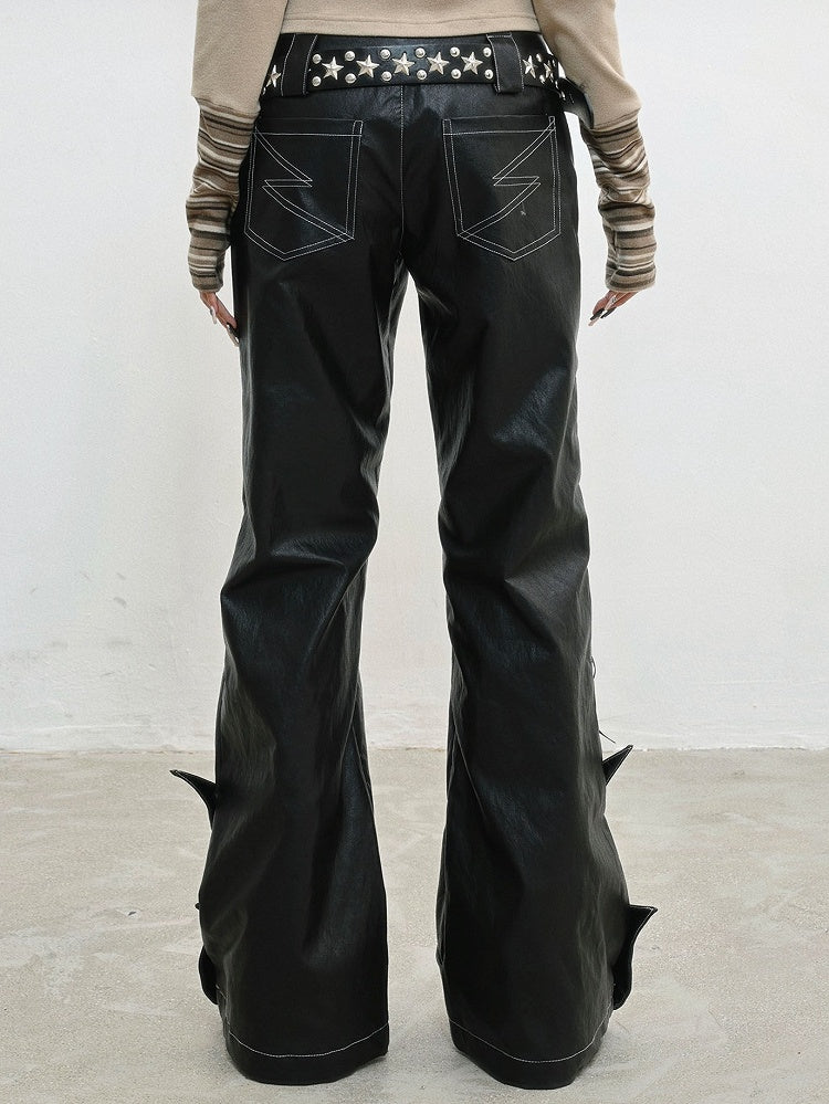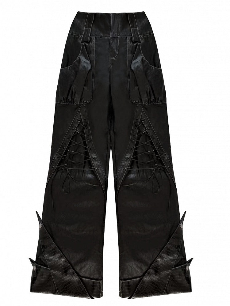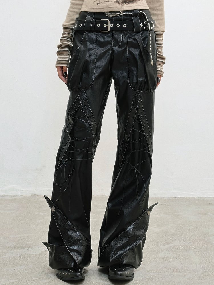 PU Punk Rock Black with Lace-Up Details Pants