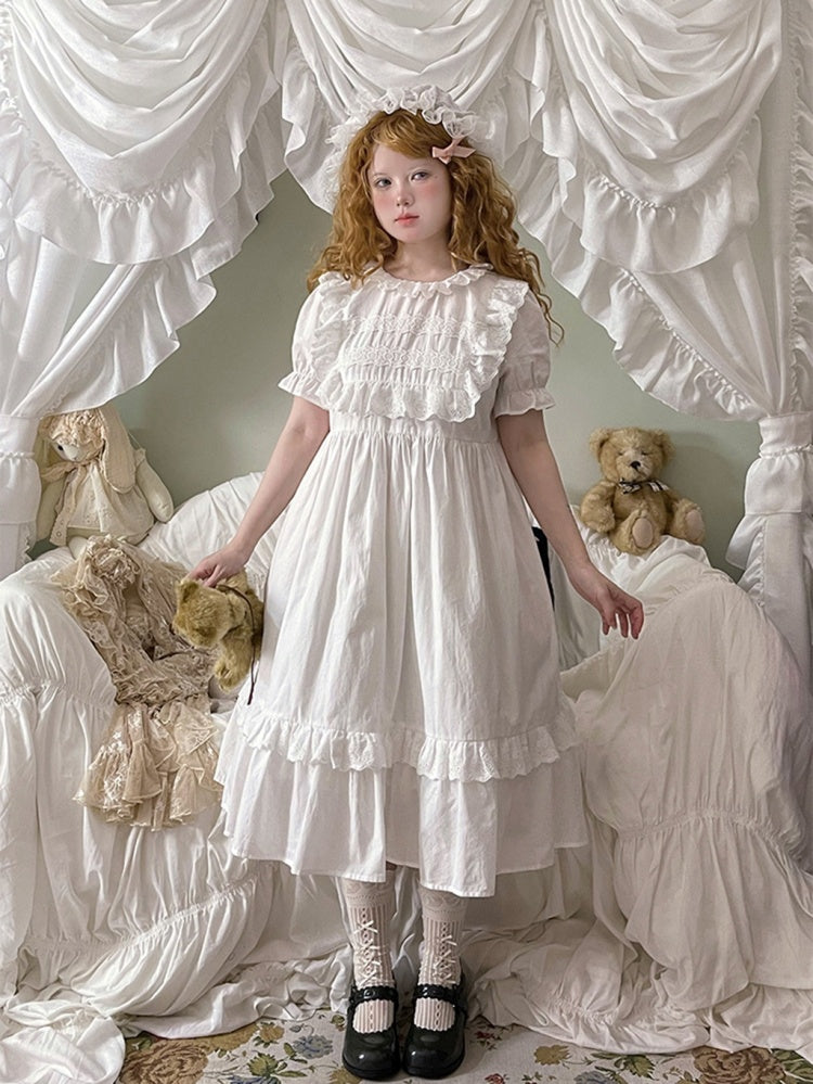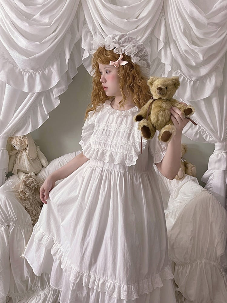 Black and White Old School Lolita Fashion Dress Bowknot Lolita JSK Set