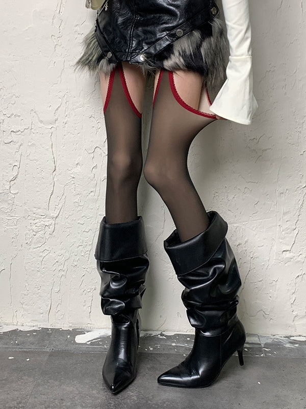 Channel your inner rebel in these adorable Punk Black&Red Y2K Suspender Tights. With a vintage punk-inspired design, these tights will add a touch of edgy cuteness to any outfit. The suspenders not only add a unique detail, but also provide a secure and comfortable fit. Elevate your style and make a statement with these tights.