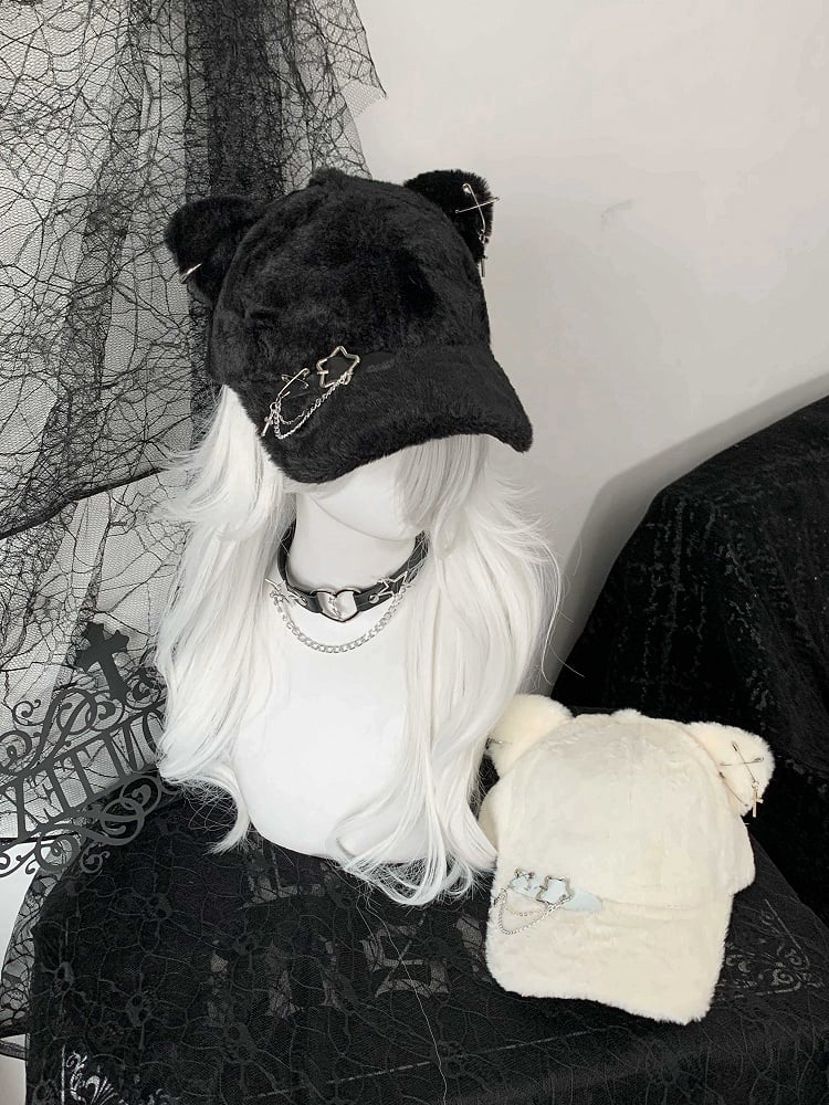 Punk - Cat-Ear Detail Japanese with Cap Cute Baseball Black Style Chain