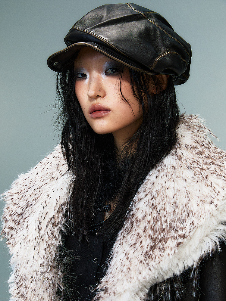 Punk Design Hat Distressed Studs Asymmetrical Black