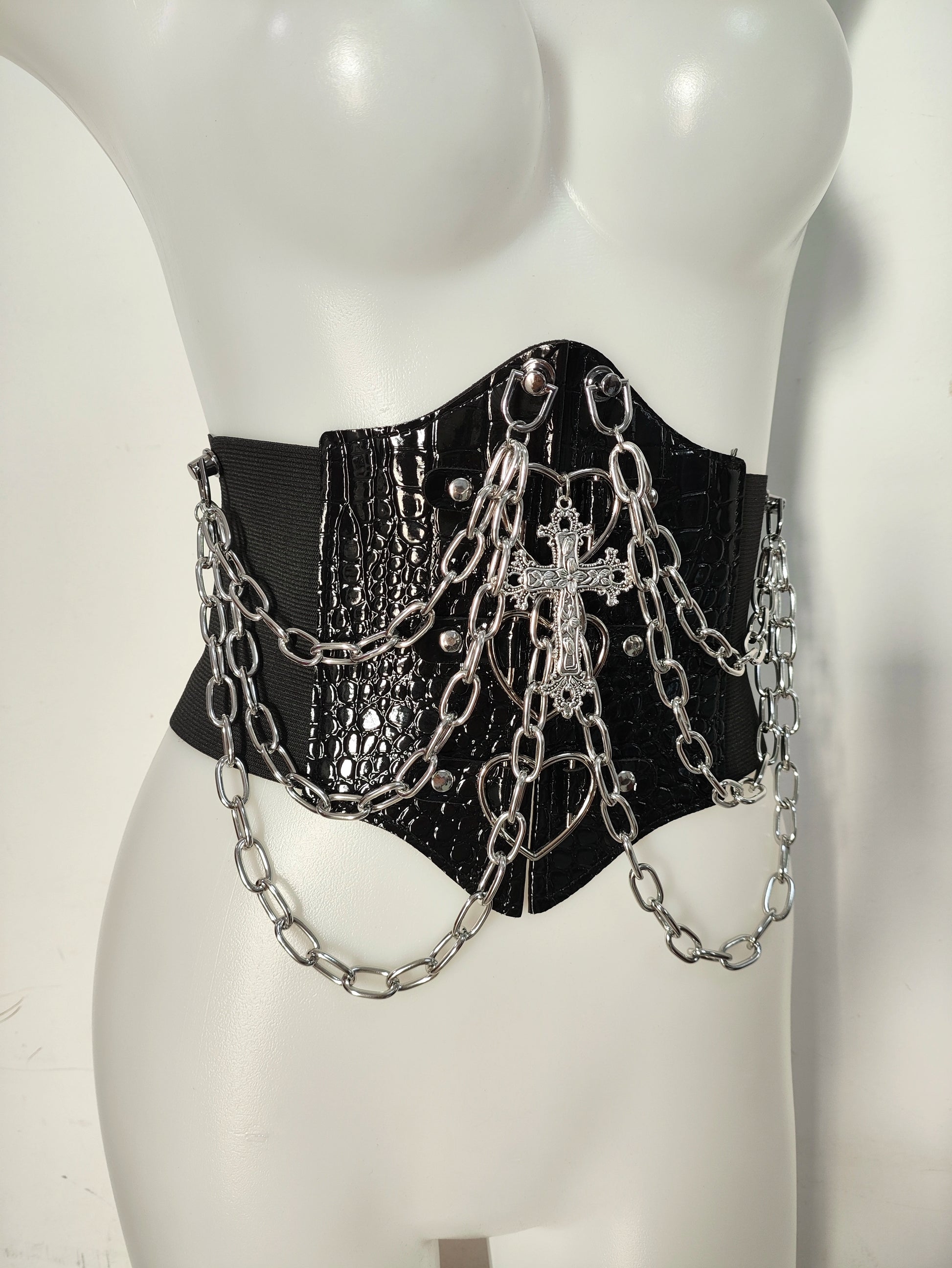 punk Y2K Velcro Chain Cross Niche Waist Seal