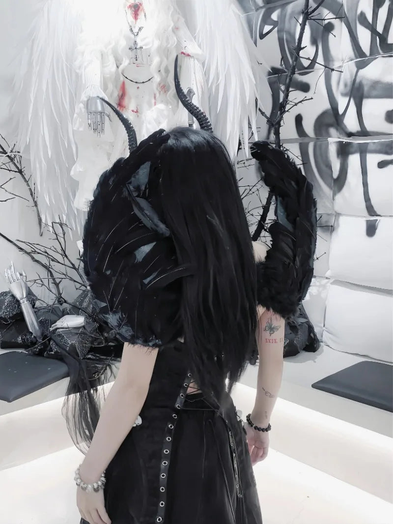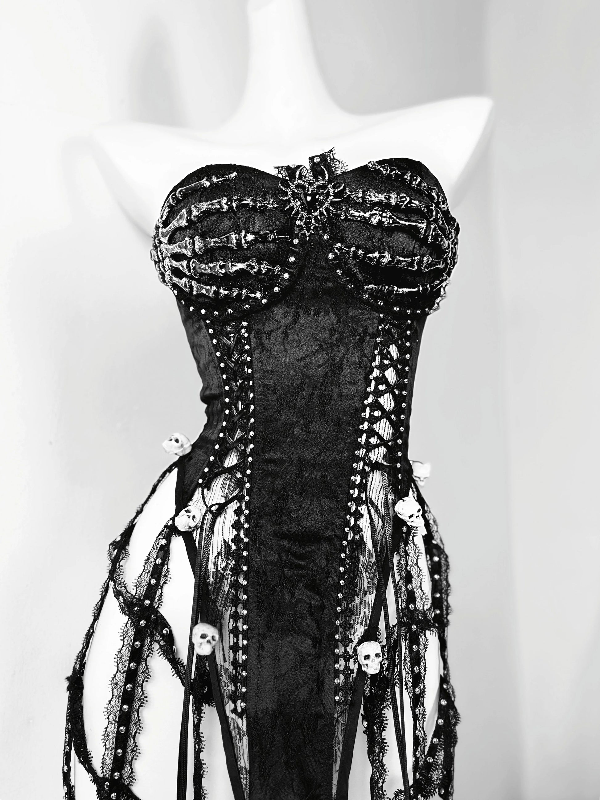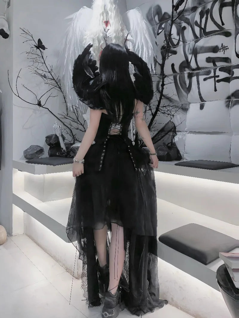 Embrace your inner darkness with this striking goth corset top that's equal parts edgy and affordable. Featuring bold black straps and a dramatic bird cage design, it's the perfect piece for anyone ready to make a statement. The adjustable drawstring ensures a custom fit that flatters your silhouette, while the intricate detailing adds serious visual impact. Whether you're channeling dark romance or just love the goth aesthetic, this corset delivers major attitude without breaking the bank. Dare to be different.