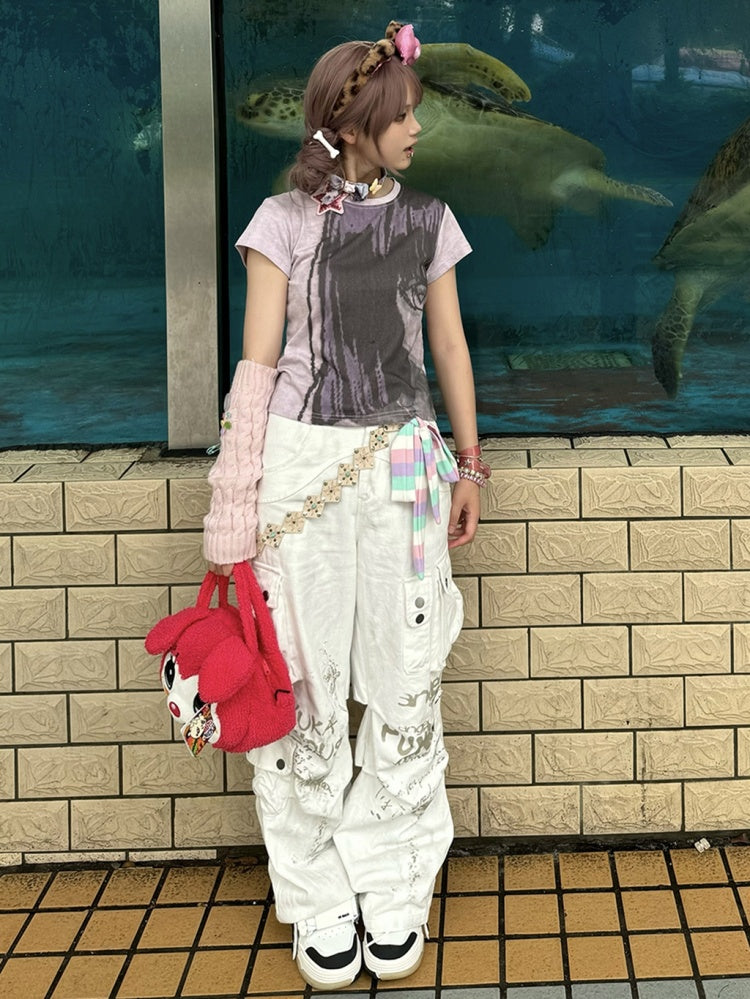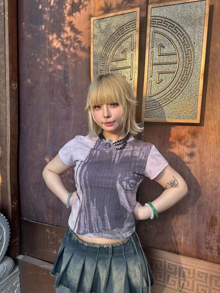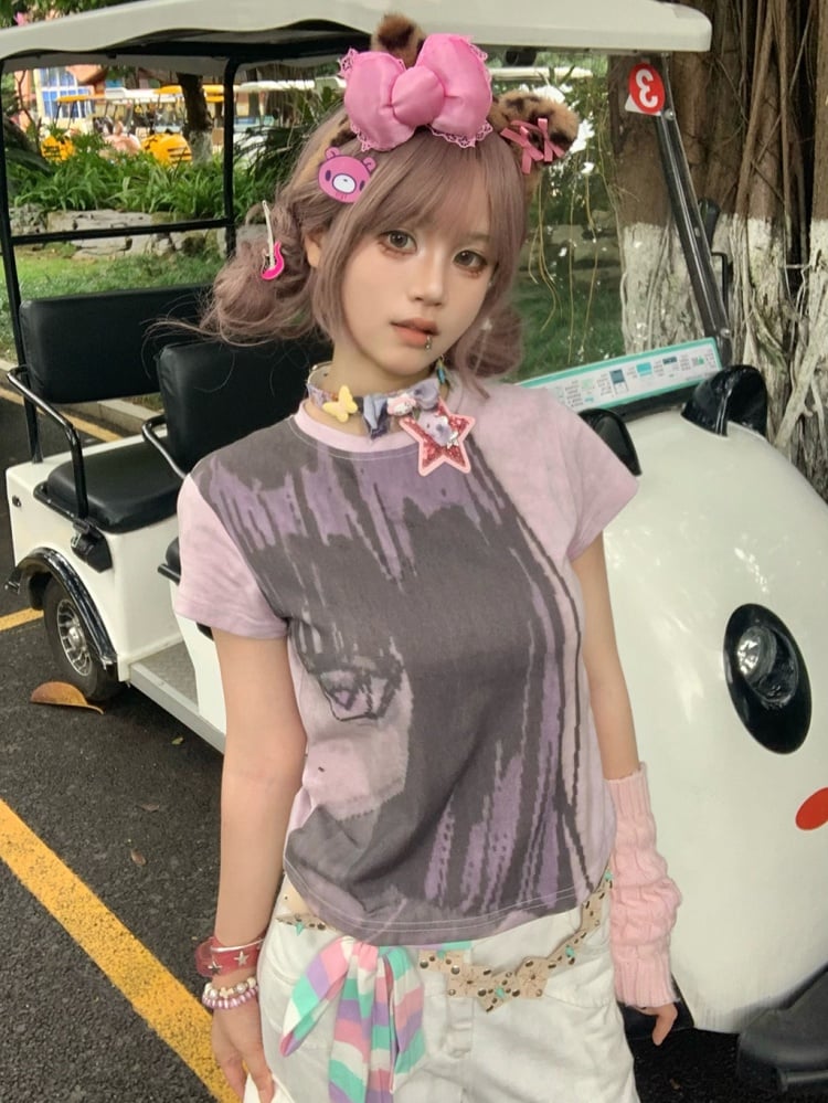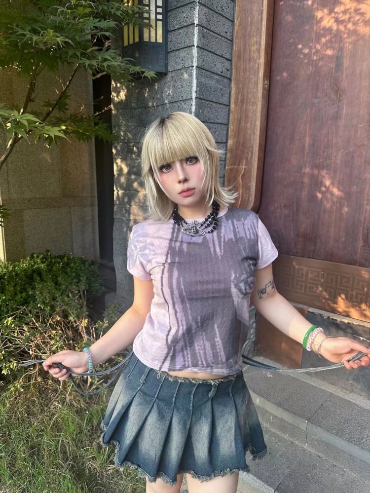 This cute Purple Emo Punk Graphic T-shirt is a must-have for any punk lover. The striking graphic design adds a touch of edginess to your outfit, while the purple color brings a pop of color. Made with high-quality fabric, it's comfortable to wear all day long. Make a statement with this unique t-shirt.