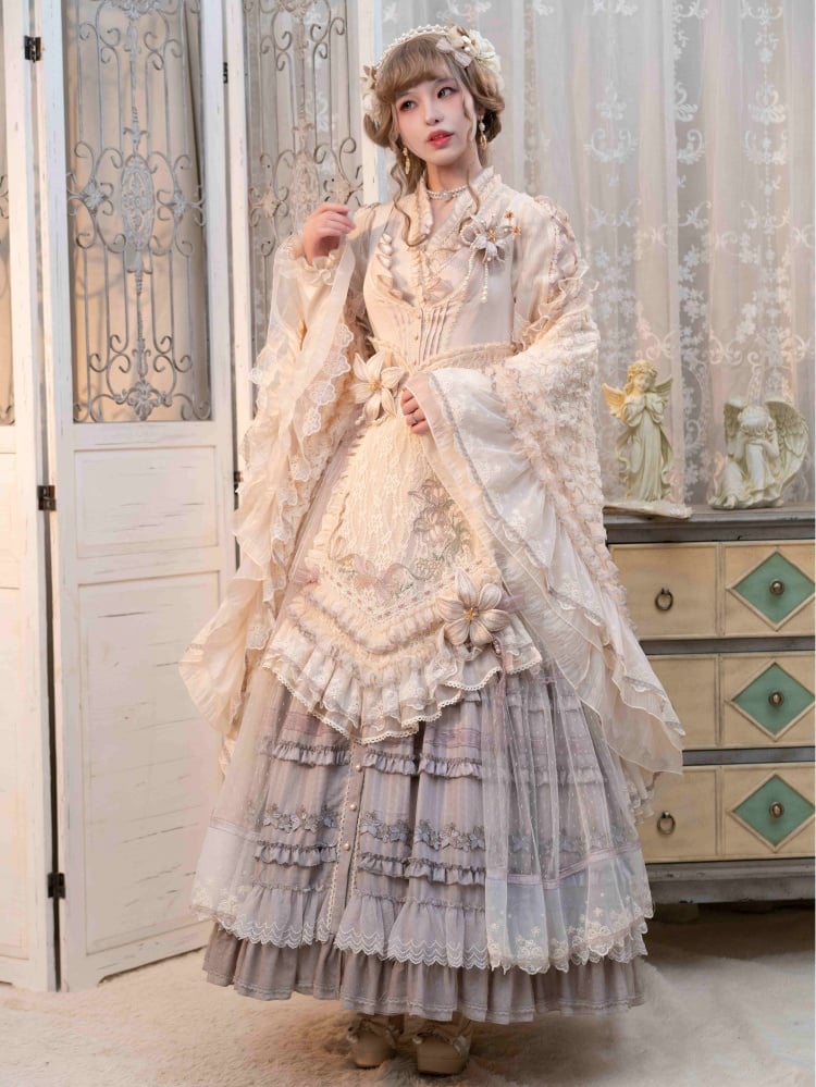 Purple Front Button Placket Lily Embroidery Elegant Classic Lolita JSK Full Set Pink House Fashion