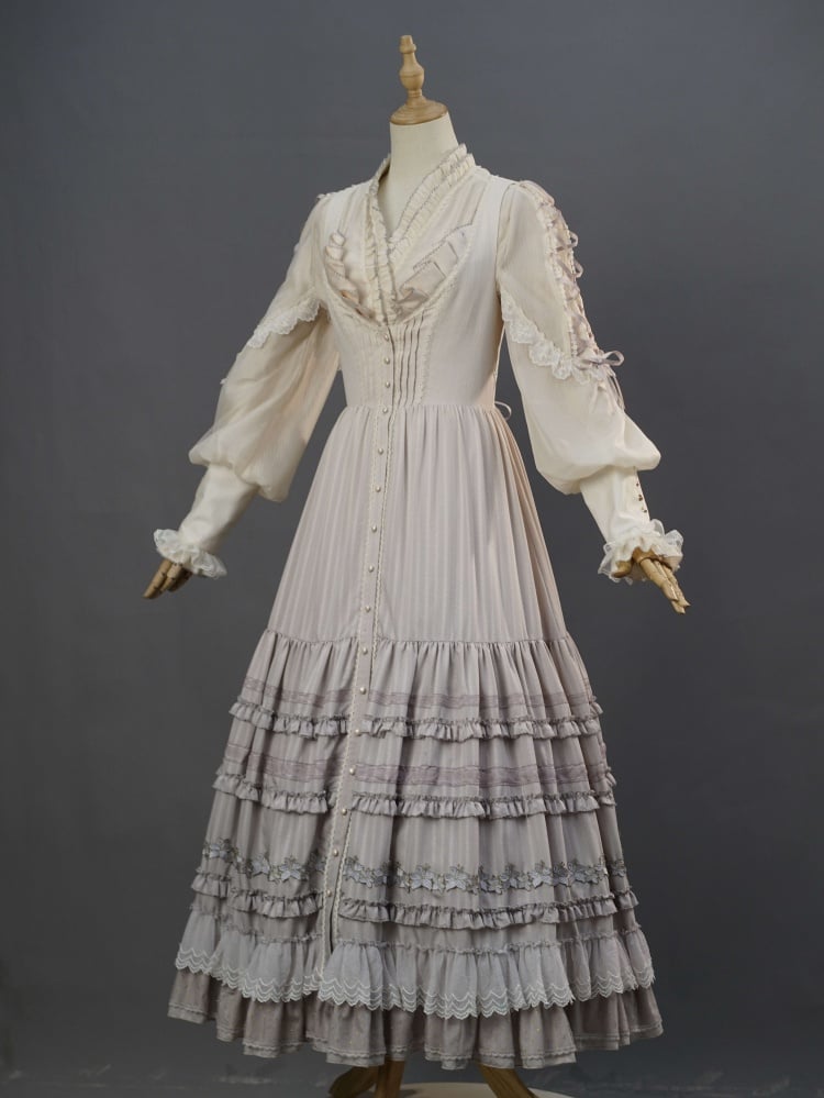 This elegant Purple Front Button Placket Lily Embroidery Lolita JSK Full Set boasts delicate pink house fashion embroidery, giving you a lovely and classic look. The front buttons offer ease and convenience for dressing, while the full set allows for a complete outfit with potential layering options.