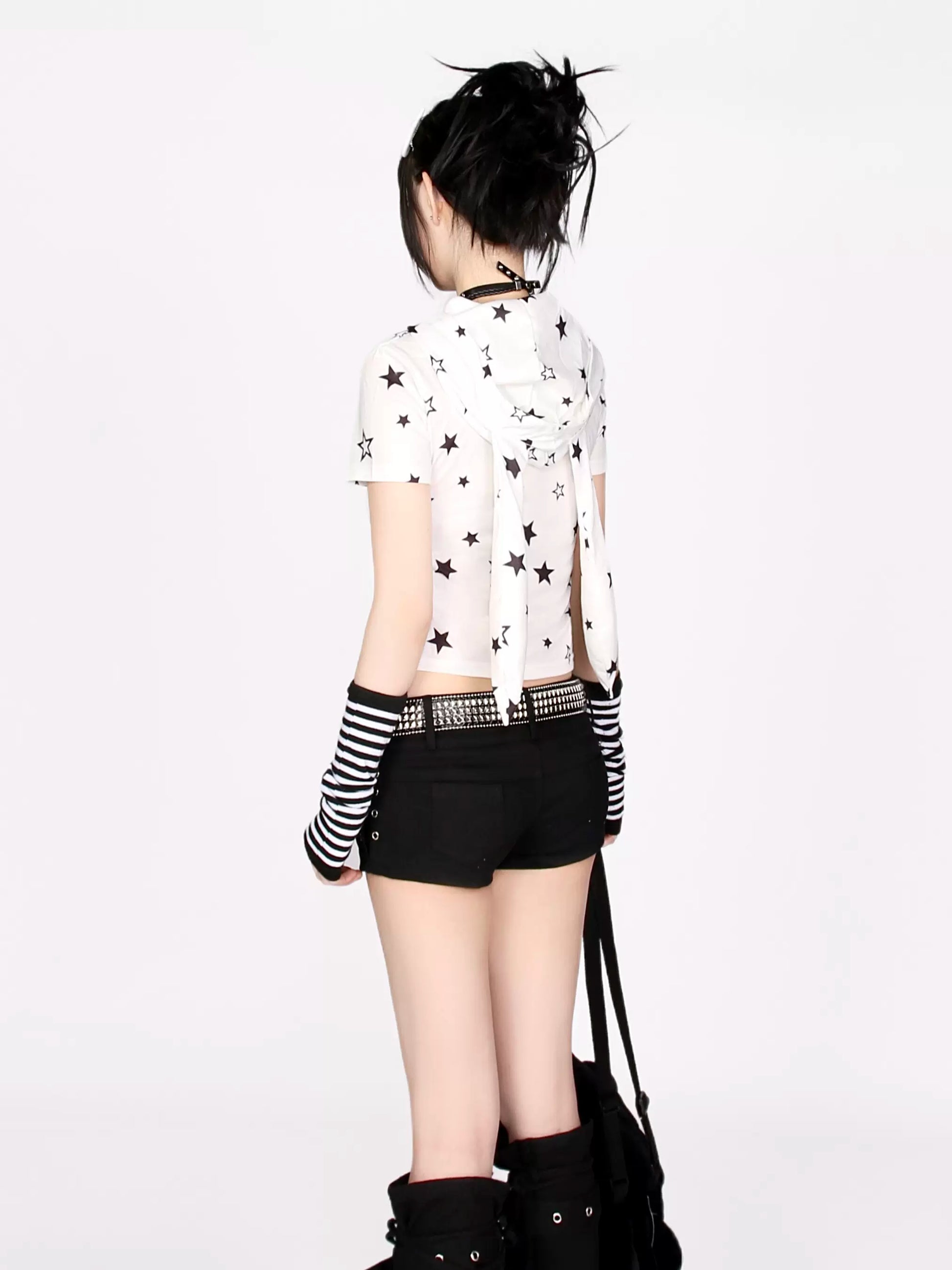 This adorable Rabbit Print and T-shirt Foodie features cute star ears and a cropped design. Perfect for any food lover, this top will add a playful touch to any outfit.