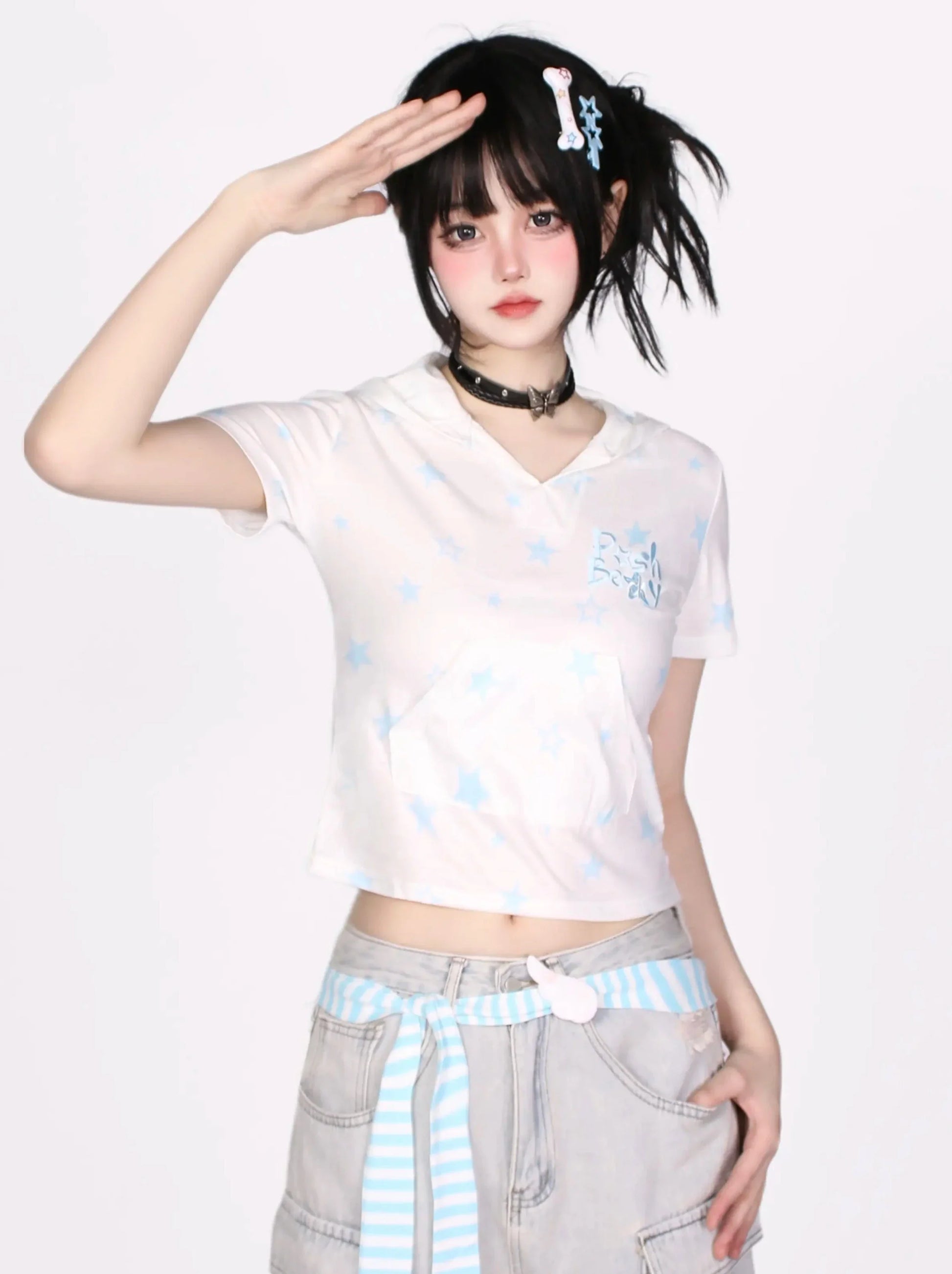 Rabbit and T-shirt Foodie with Star Ears Cropped