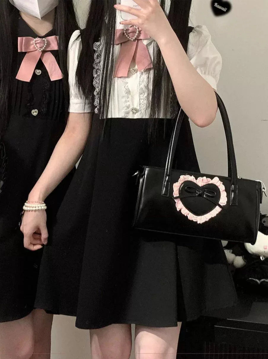 Black and White Old School Lolita Fashion Dress Bowknot Lolita JSK Set