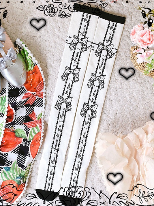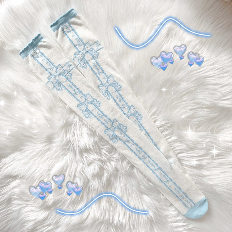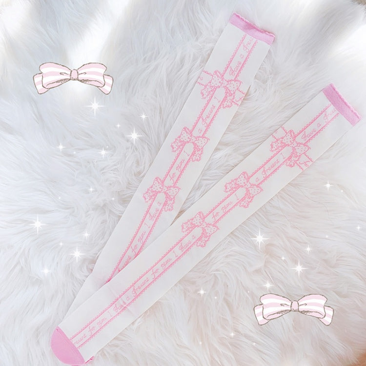 Red/Black/Blue/Pink Bowknot Print Sweet Lolita Overknee Stockings
