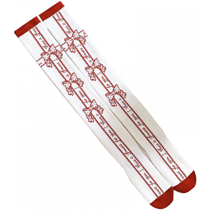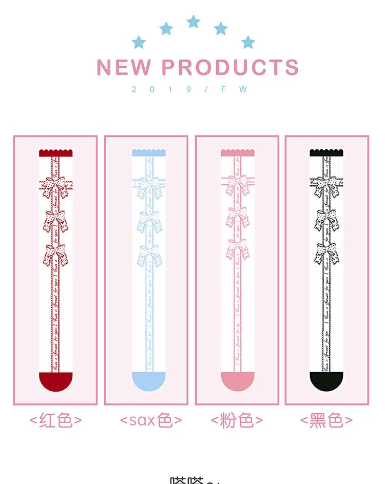These lovely overknee stockings feature a charming bowknot print in red, black, blue, or pink. Perfect for adding a touch of sweetness to your outfit.