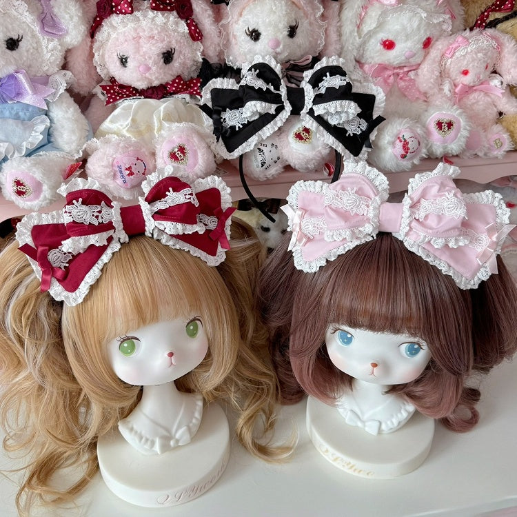 Pink/Wine Red/Black Lace Trim Bowknot KC