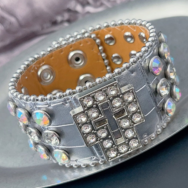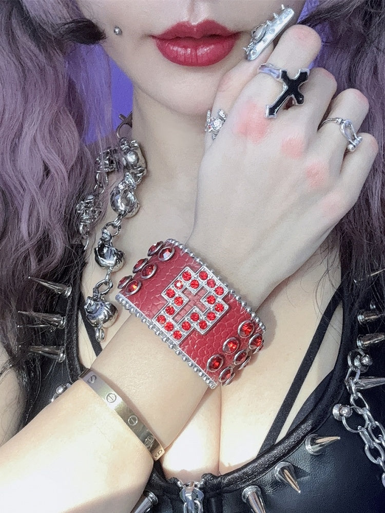 Red/Black/Silver Wristband Y2K Rhinestone Bracelet Decorated Cross Design