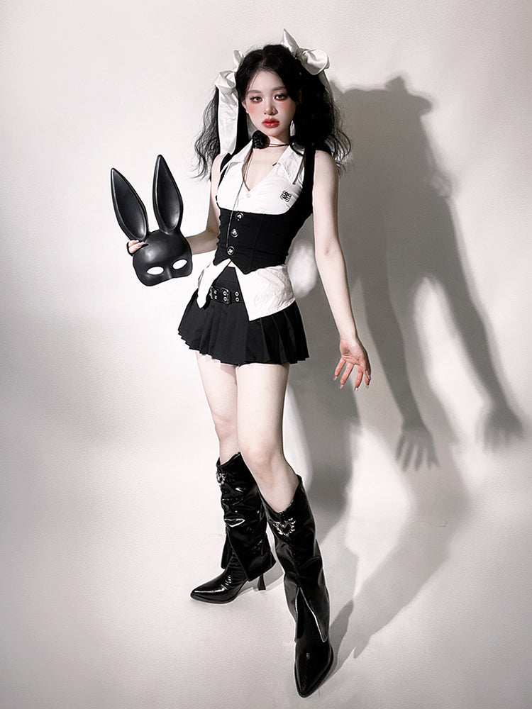 Black and White Old School Lolita Fashion Dress Bowknot Lolita JSK Set