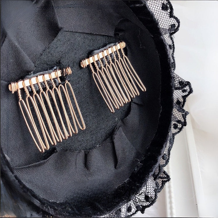 Rhinestone Black Cross Mini Lolita Crown Hat Decorated Hime Design bow Beaded