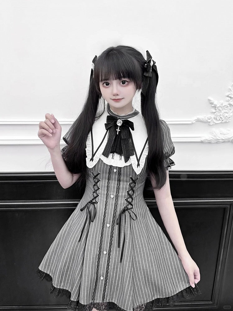 Jirai Kei Black Bow Cross Charm Rhinestone Embellished Hairclips