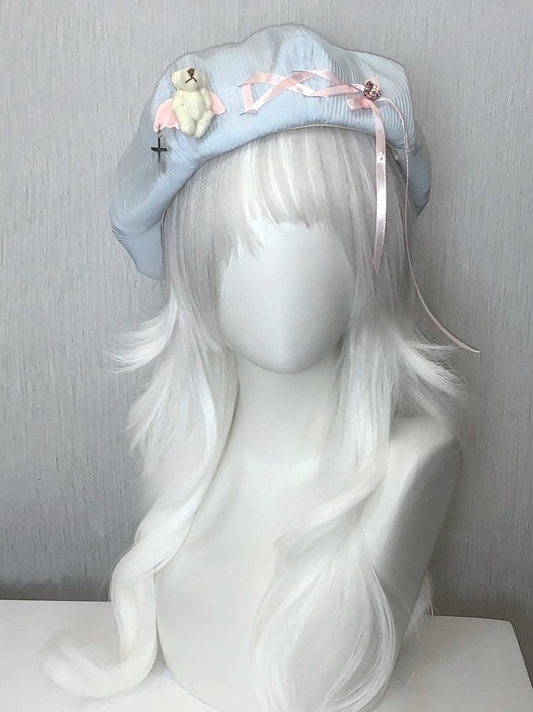 Rhinestone Plush Angel Bear Beret with Lace-up Detail