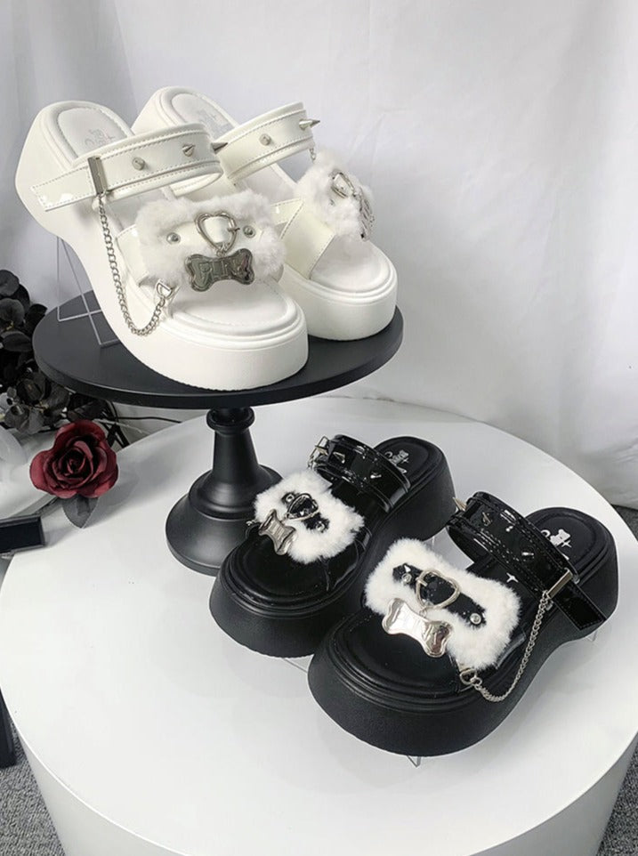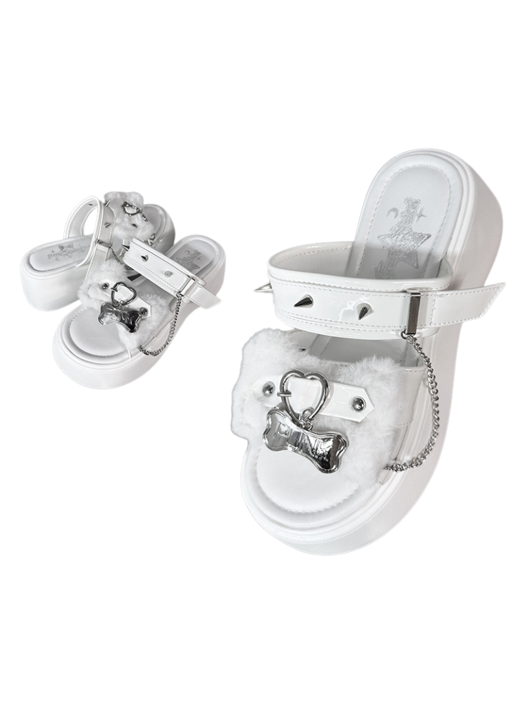 Add some edge to your wardrobe with these cute and unique Rivet Sandal Chain Flat Platform Punk Fur shoes. With a comfortable flat platform and stylish chain and fur detailing, these sandals are perfect for any fashion-forward individual looking to make a statement.