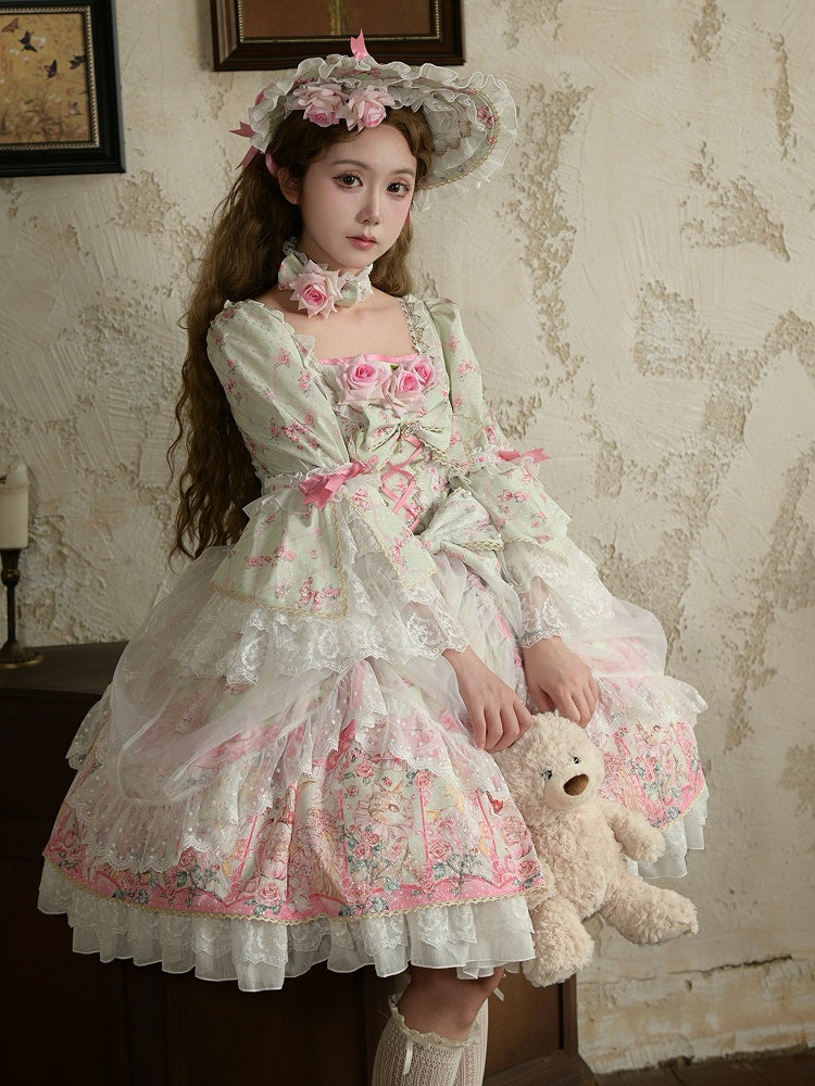Pink and White Old School Lolita Fashion Dress Bowknot Detais Lolita JSK Set