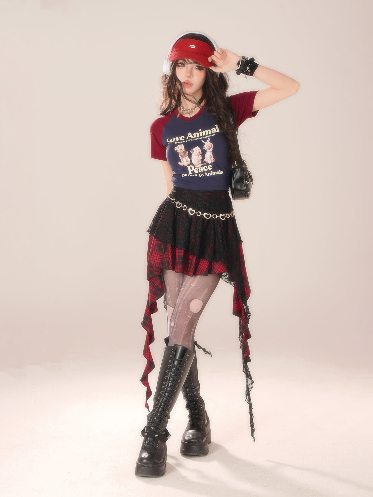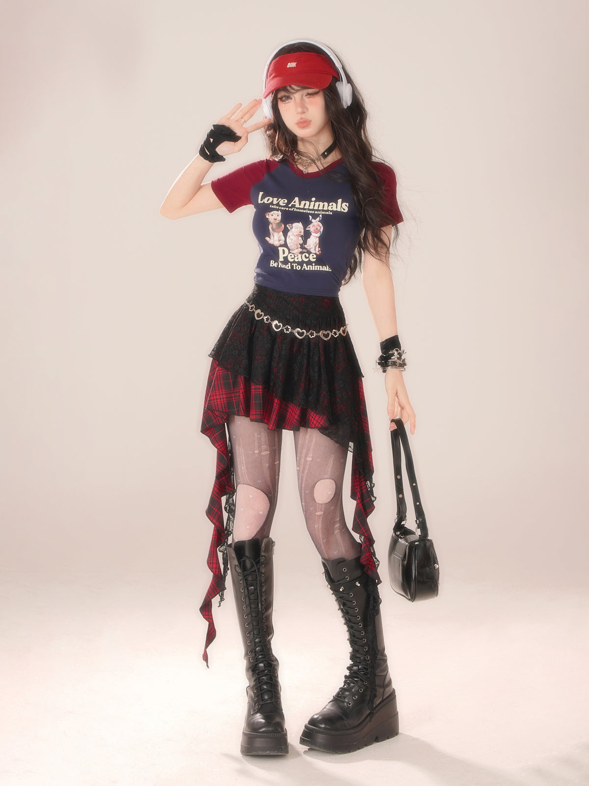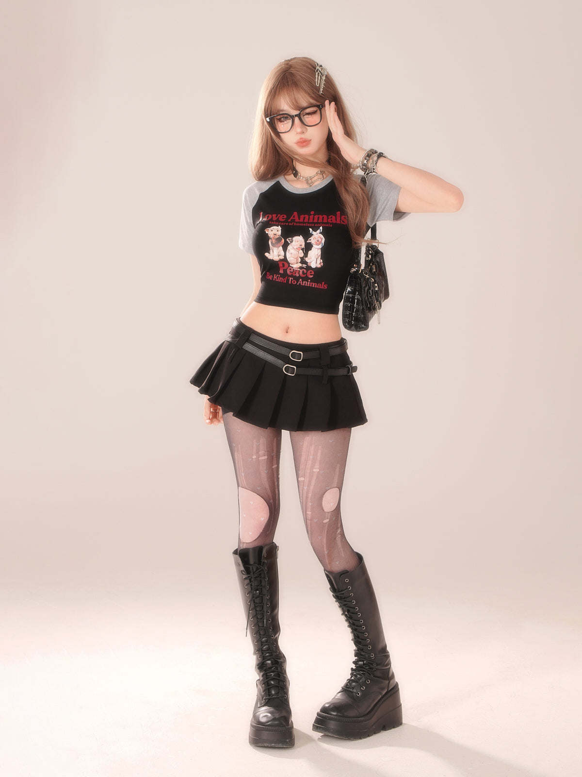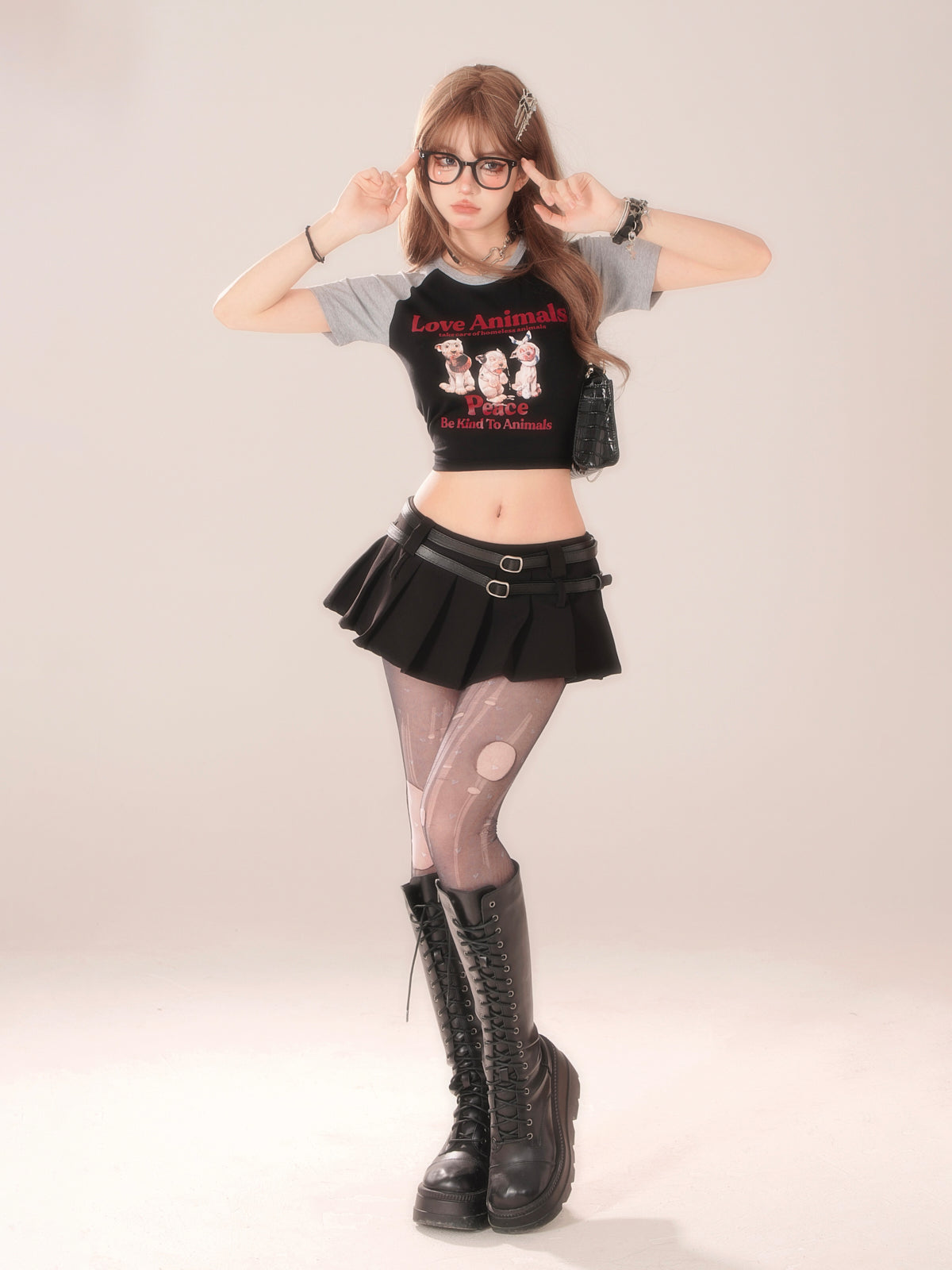 Round Animal Sleeve Plug-In T-Shirt Neck