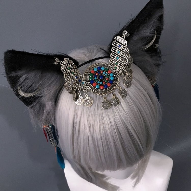 2 Colors Plush Wolf Ear with Round Decorations
