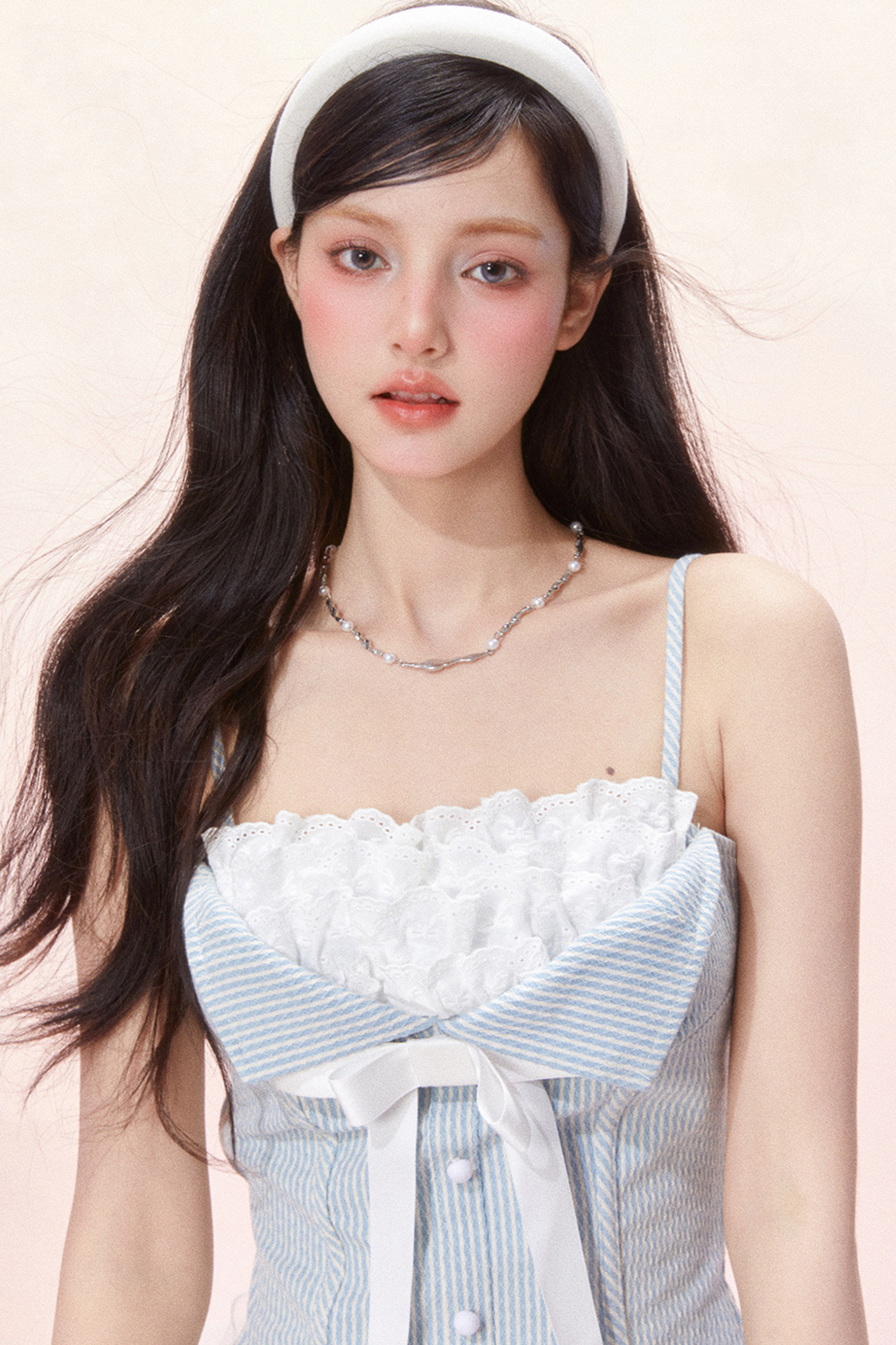 Blue and White Old School Lolita Fashion Dress Bowknot Detais JSK Set
