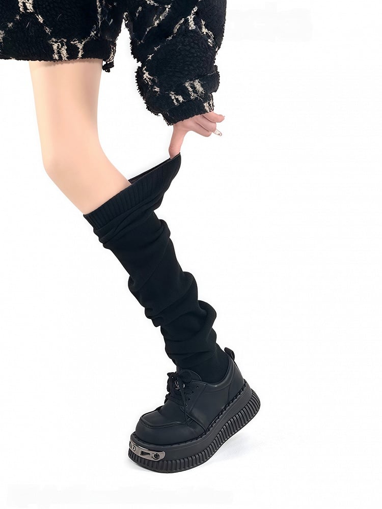 Ruffled Cuff Black/White/Gray Knitted Socks Loose Warm