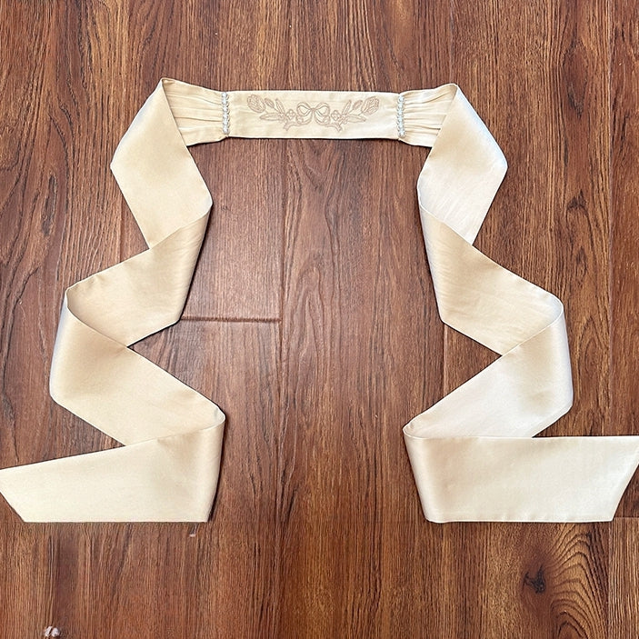 Pink / Blue / Gold Tulip and Bowknot Embrodery Sash