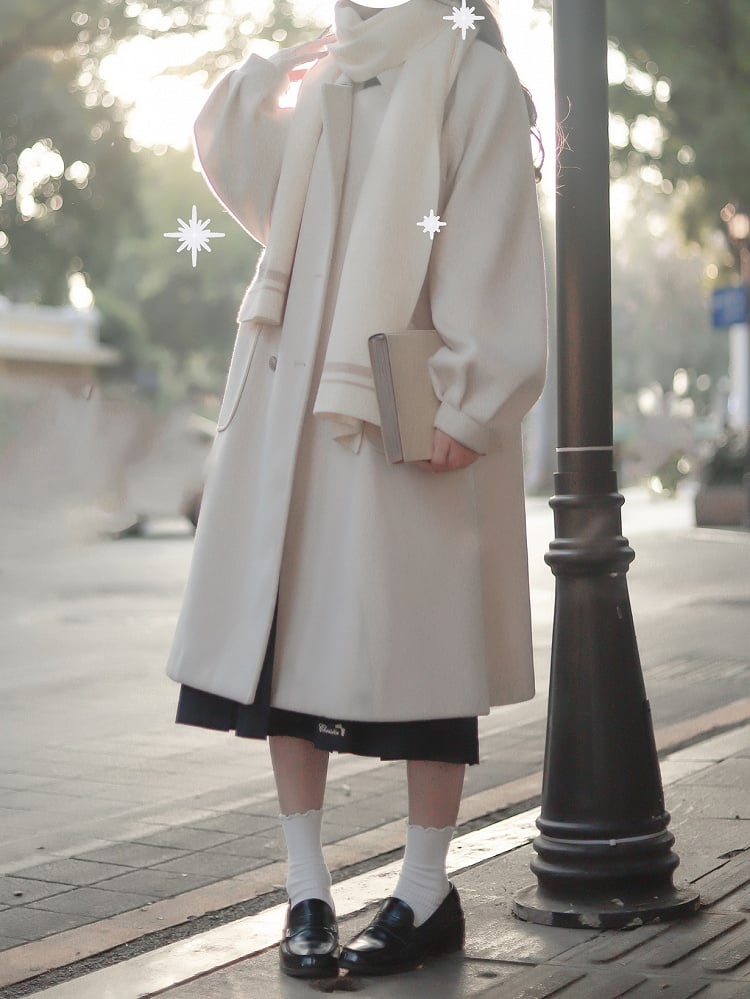 Red/White Scarf with Letter Embroidery