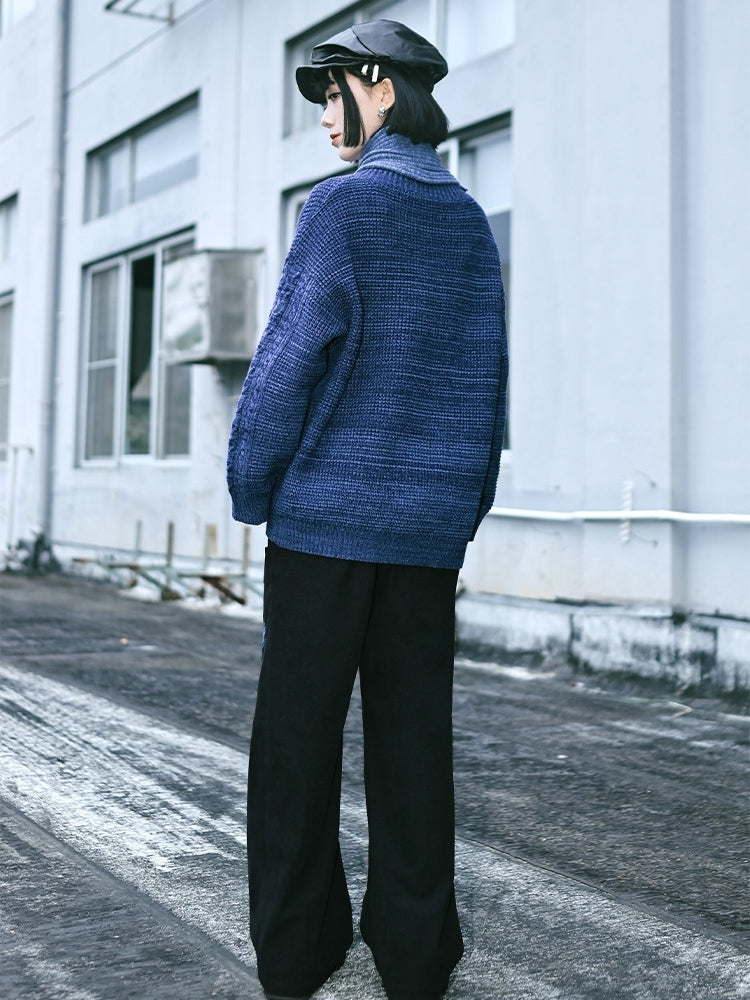 Blue Gothic V-Neck Sweater & Scarf Set with Goldfish Embroidery