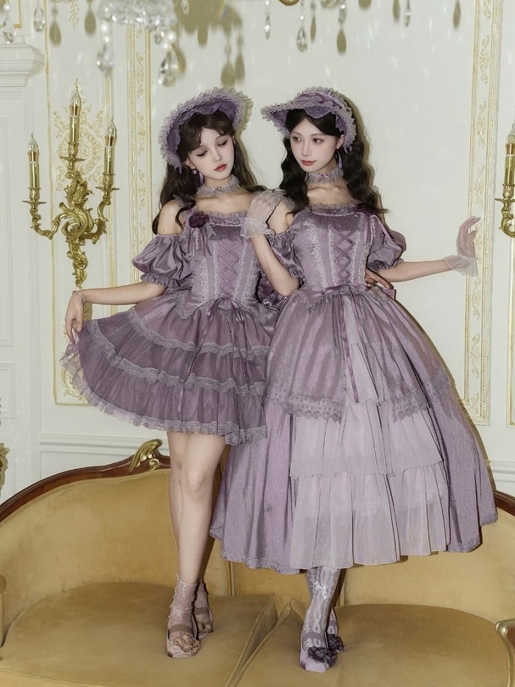 Pink and White Old School Lolita Fashion Dress Bowknot Detais Lolita JSK Set
