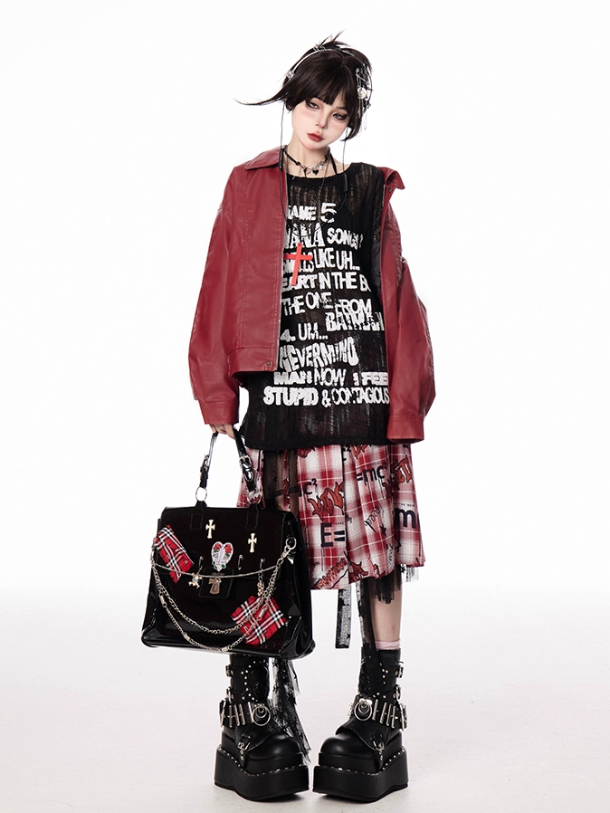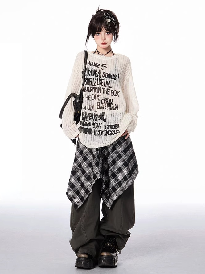 Semi-sheer Coverup Round Neck Vintage Letter Print Black/Apricot